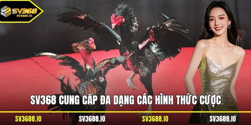 Đá gà ăn tiền thật trên SV368 mở rộng các hình thức phong phú, phù hợp với nhiều gu cá cược khác nhau của người chơi. Dưới đây là 3 hình thức phổ biến nhất đang thu hút đông đảo cược thủ tham gia mỗi ngày.